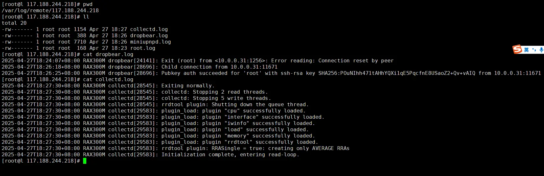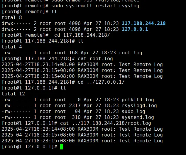 logger "Test Remote Log" 服务端查看日志是否接收