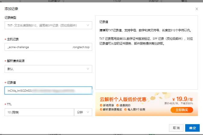 到标记4时区域名提供商后台添加txt解析记录。