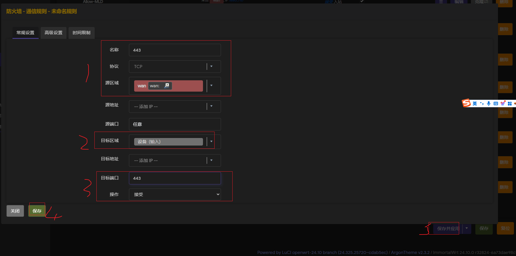 配置完成后保存并应用。