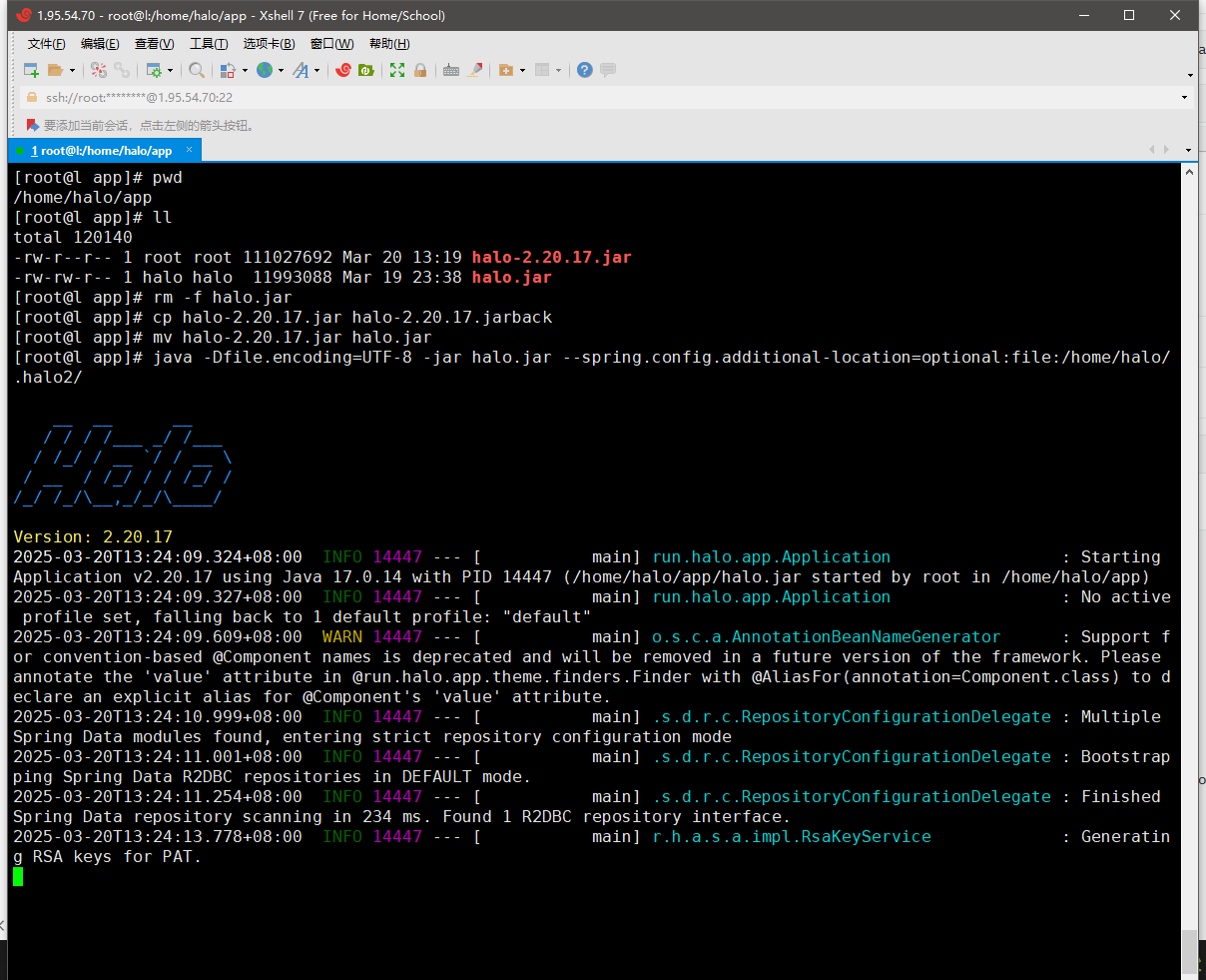 sudo systemctl enable mysql三、使用JAR文件部署HALO