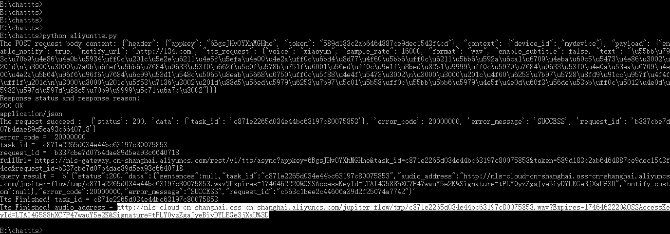 requestLongTts4Post(str(body), appKey, token)运行代码