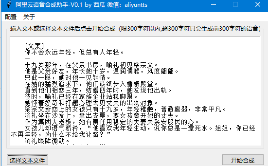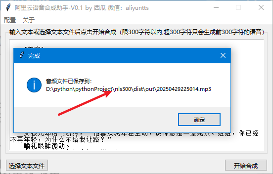 可以直接输入文本或者选择txt文本文件,点击开始合成,等待片刻就合成完成。