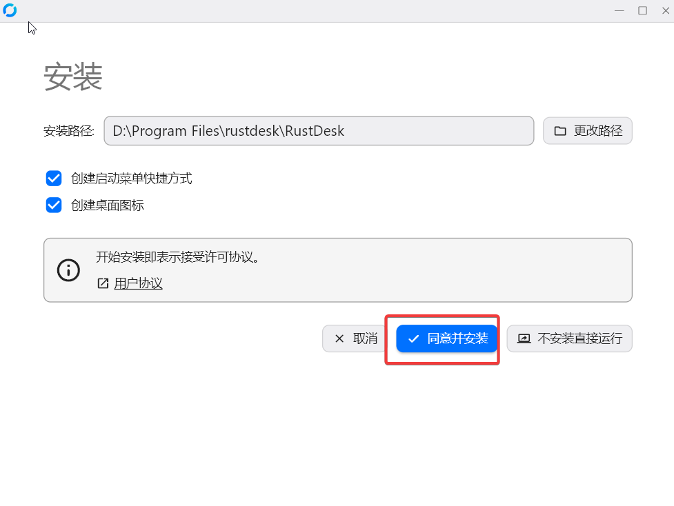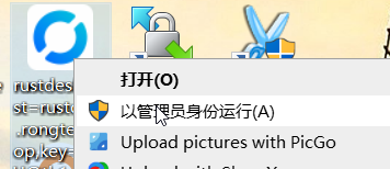 运行时在桌面找到RustDesk.使用管理员身份运行