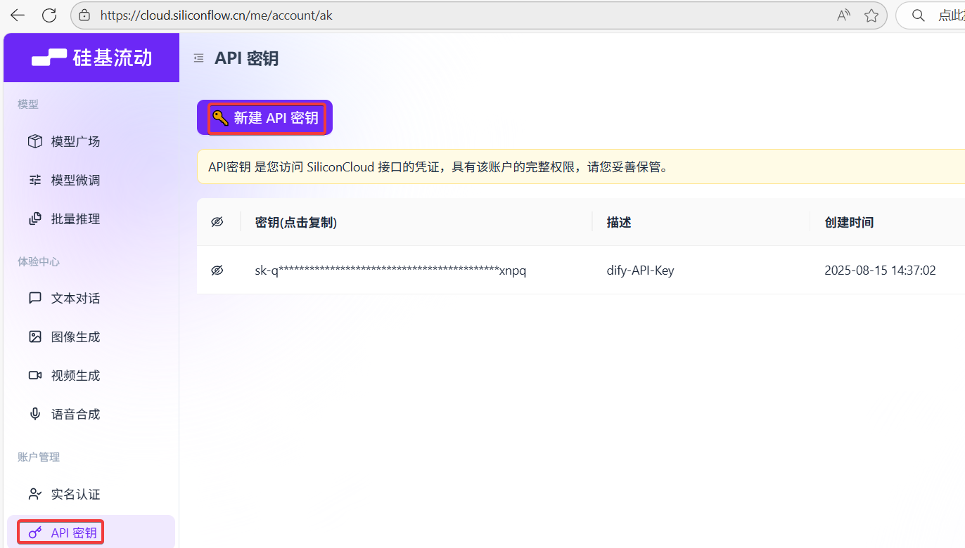 2、硅基流动创建API密钥