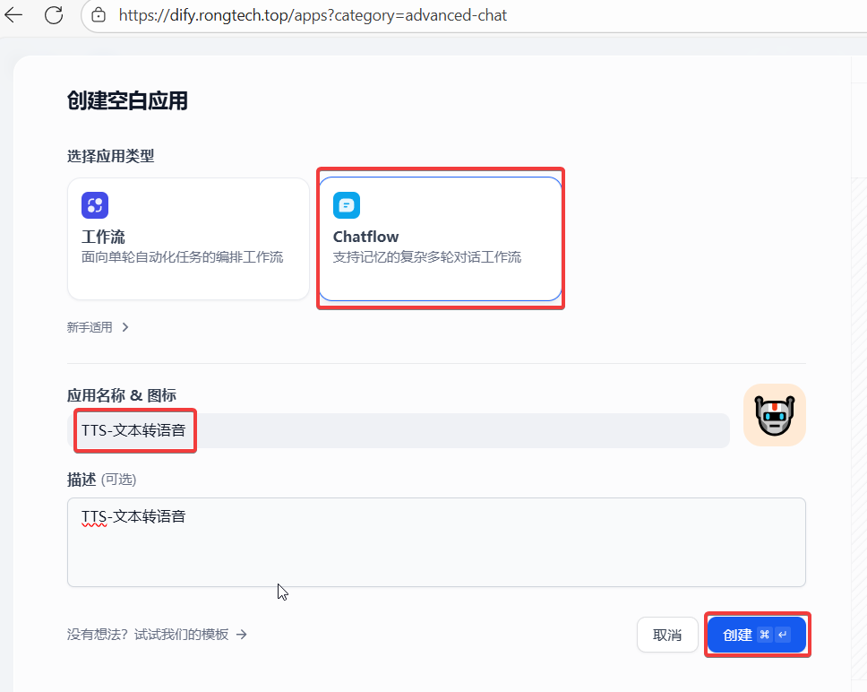 4、Dify创建一个空白的Chatflow应用