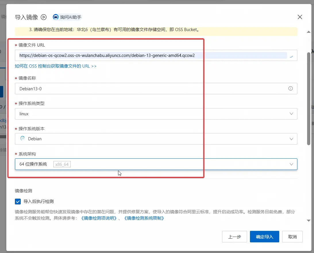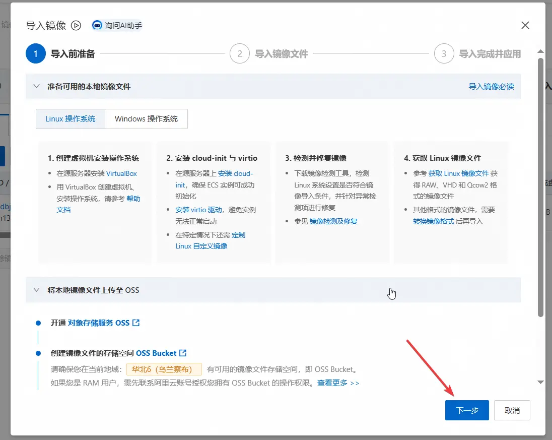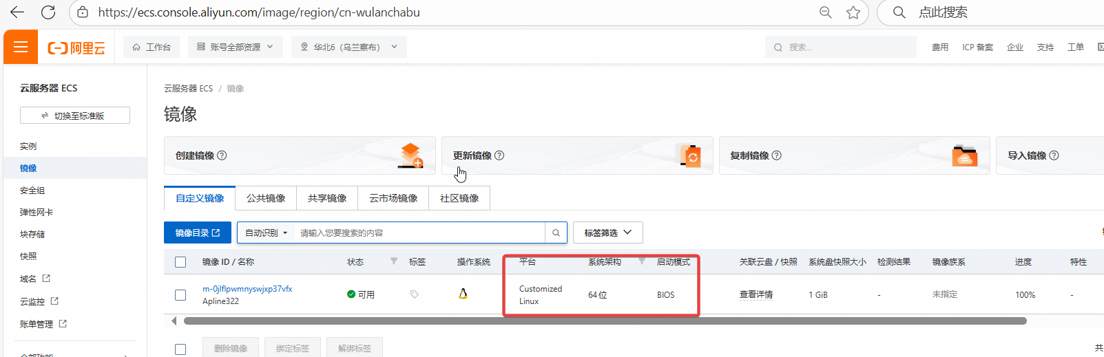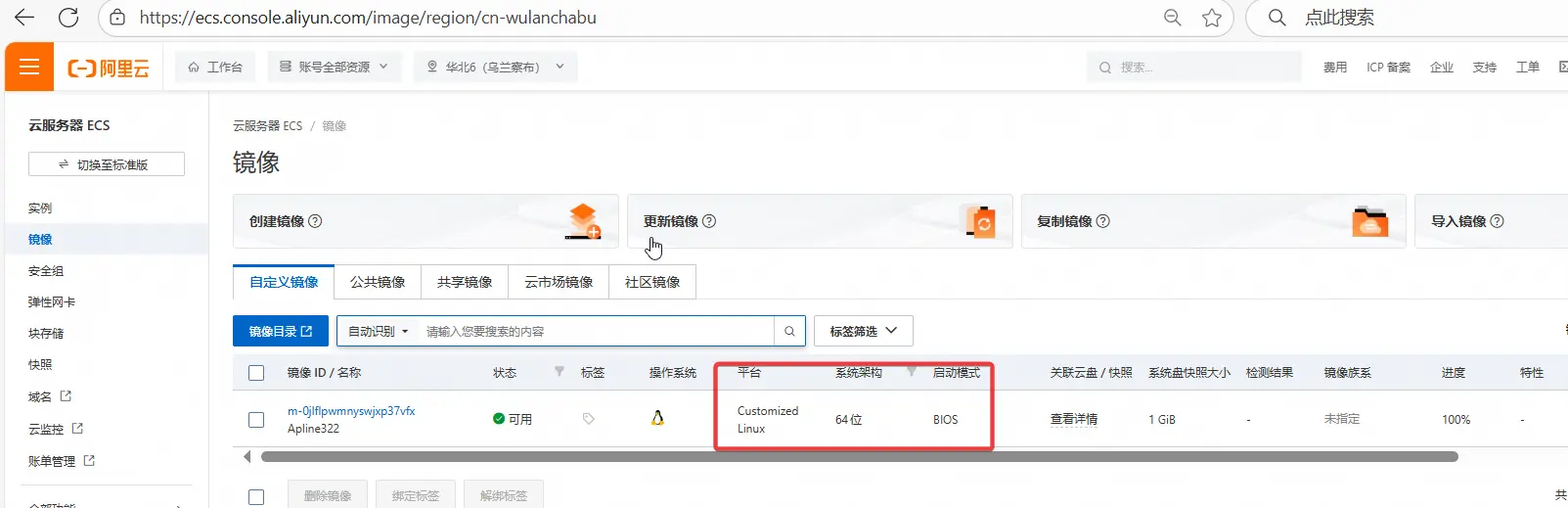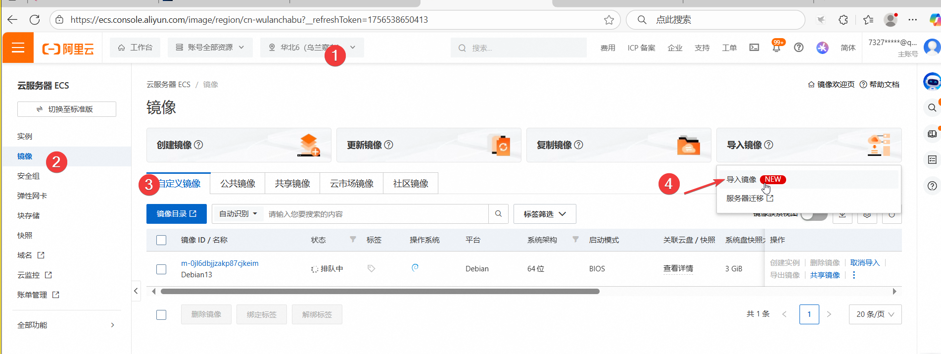 打开ECS控制台,镜像,导入镜像。