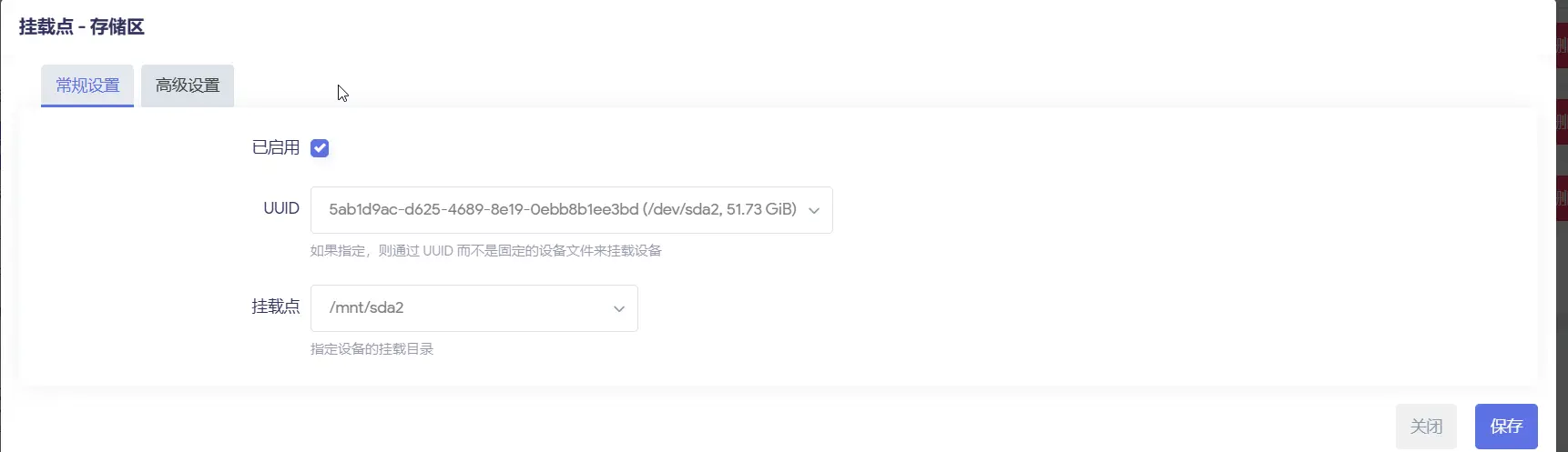 点击修改之后进入到如下界面,确保启用此挂载点是勾选状态,挂载点选择 作为外部overlay使用,保存&应用,