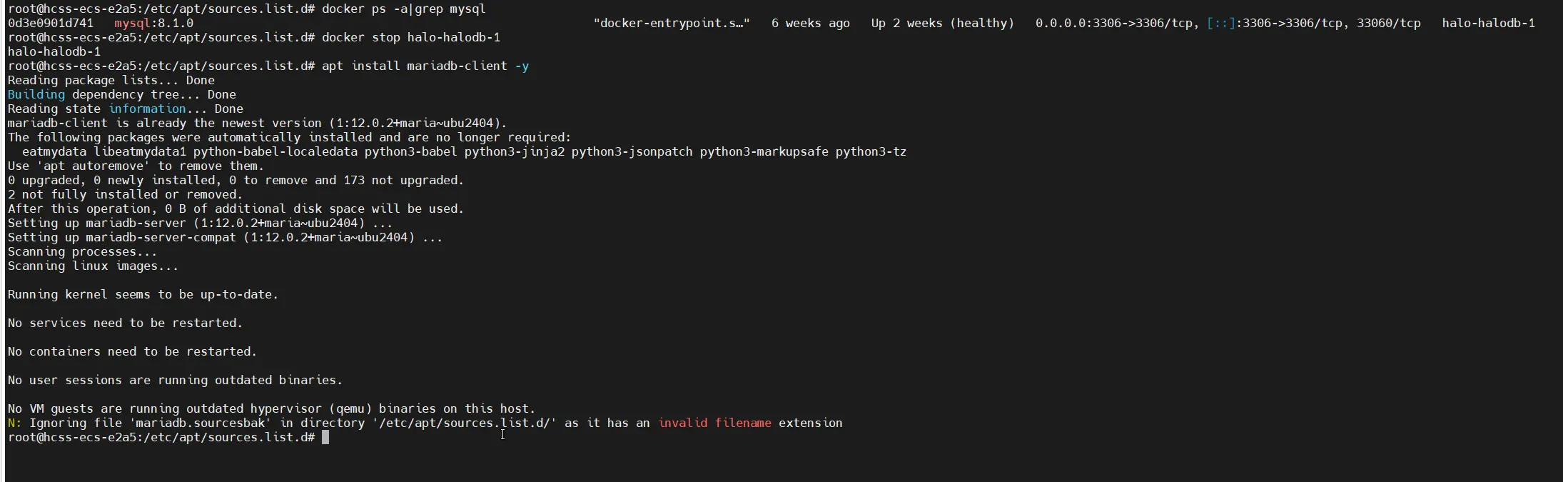 apt install mariadb-client -y还是报同样的错。