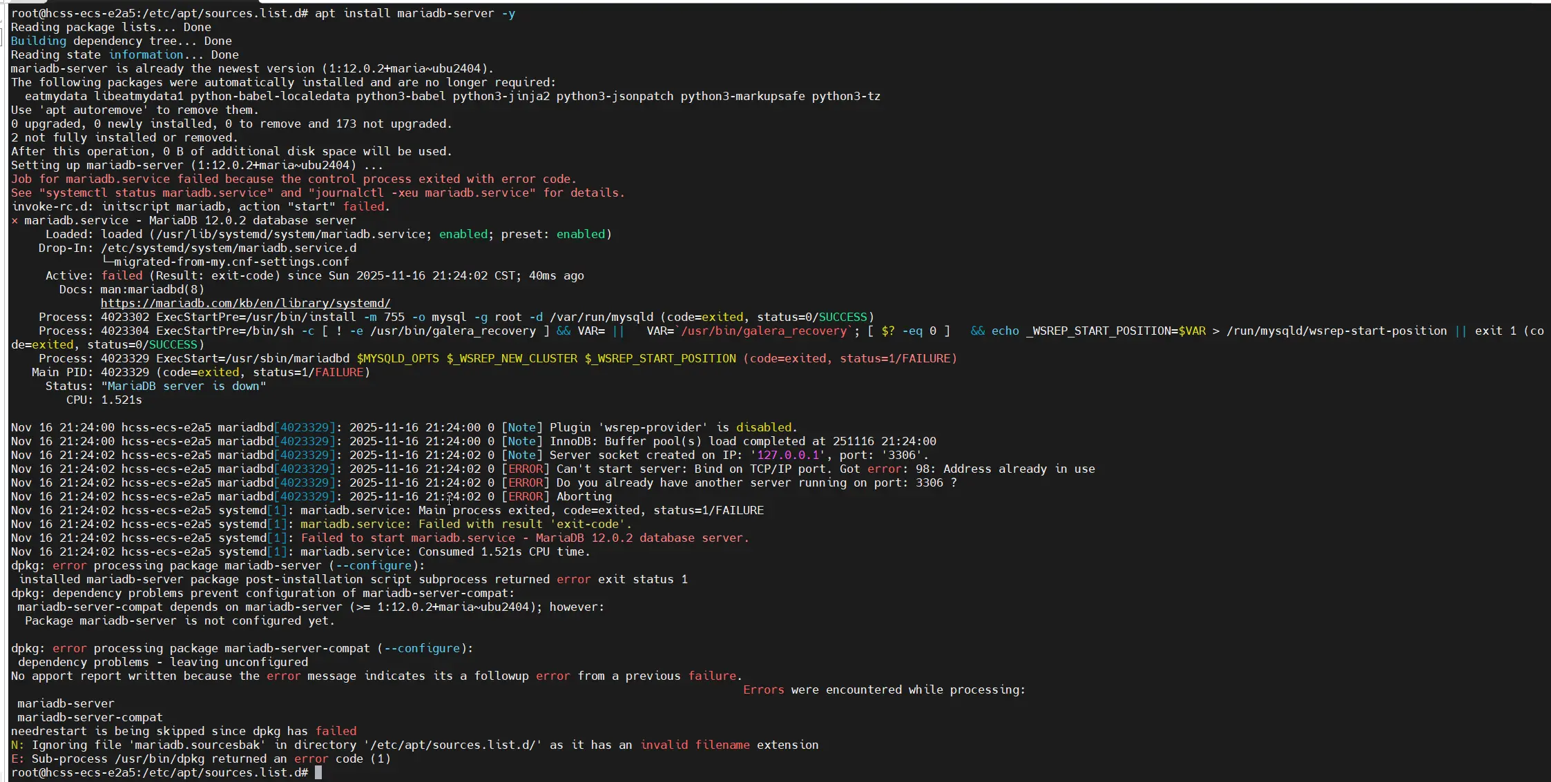 sudo apt-get install mariadb-server安装过程中遇到的问题