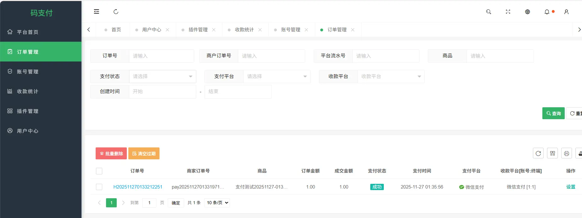 支付测试,目前我配置了微信支付,支付以及回调均正常。