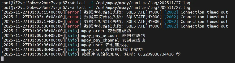 tail -f /opt/mpay/mpay/runtime/log/202511/27.log安装完成