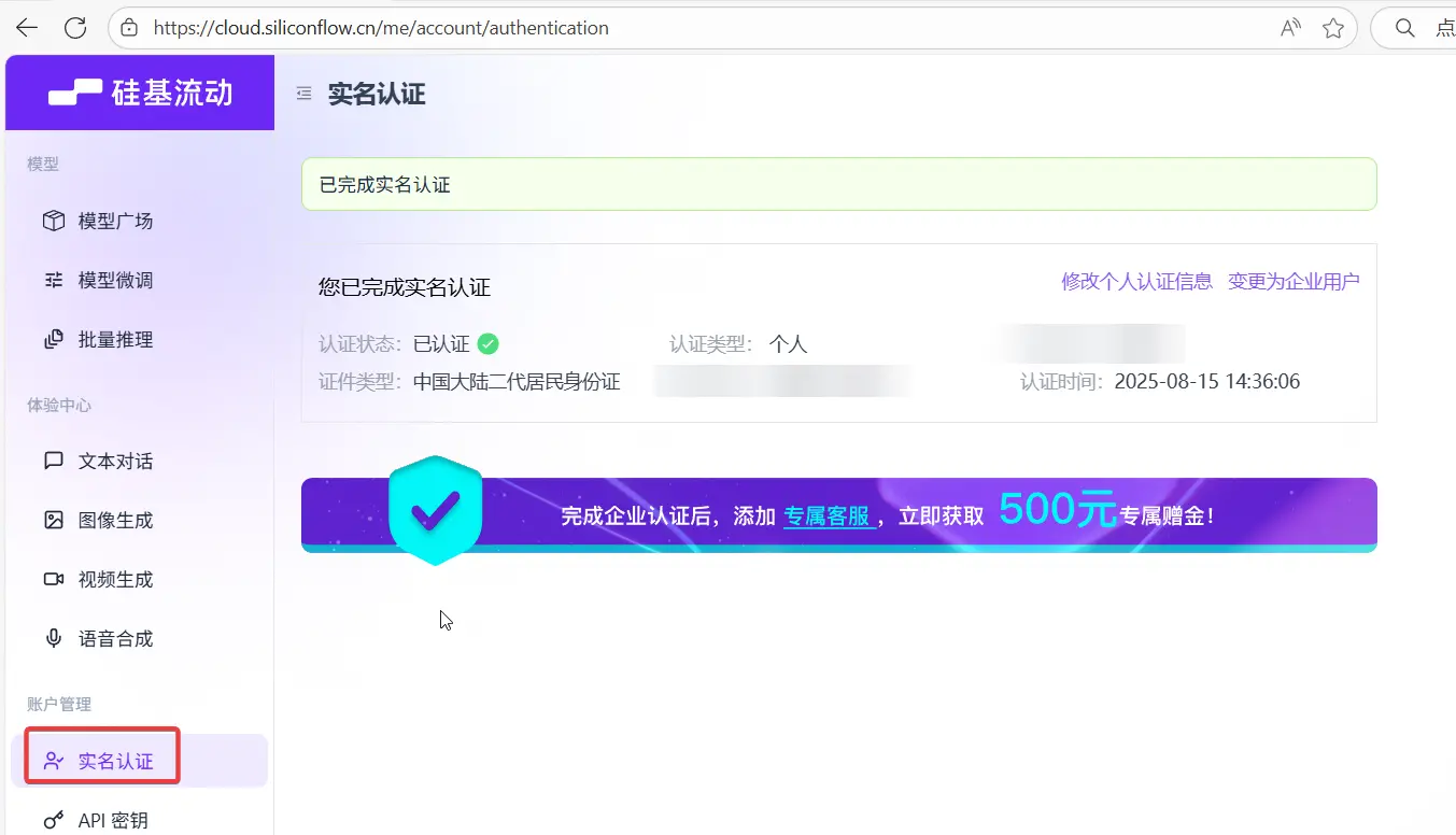注册并实名认证硅基流动
