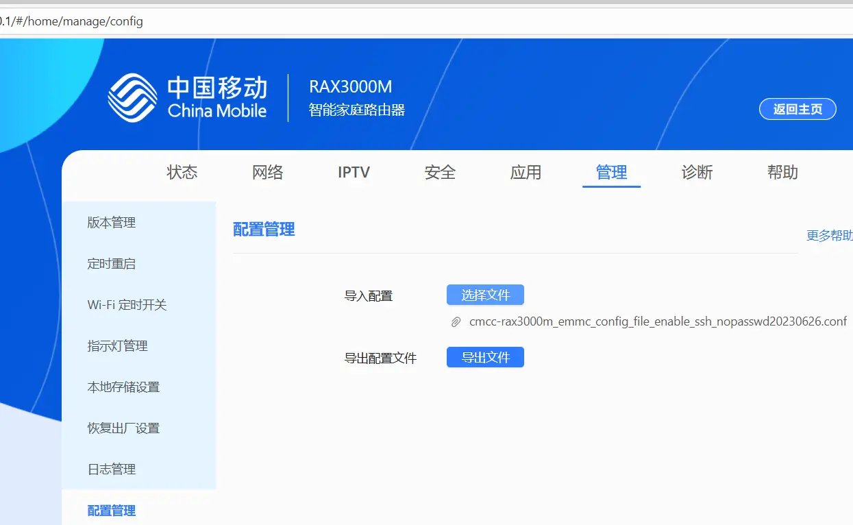 #6. 通过 Web 界面上传新配置,现在您可以 SSH 到 RAX3000M。