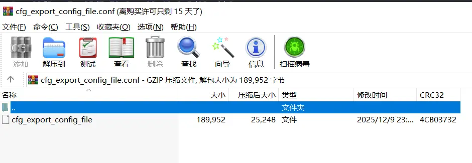 tar -zxf cfg_export_config_file.conf
