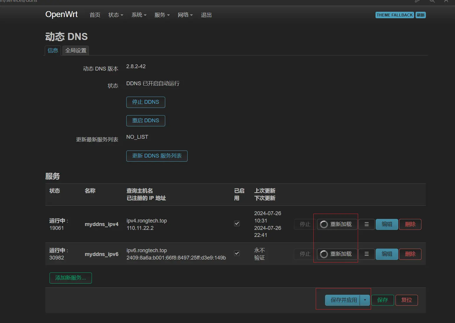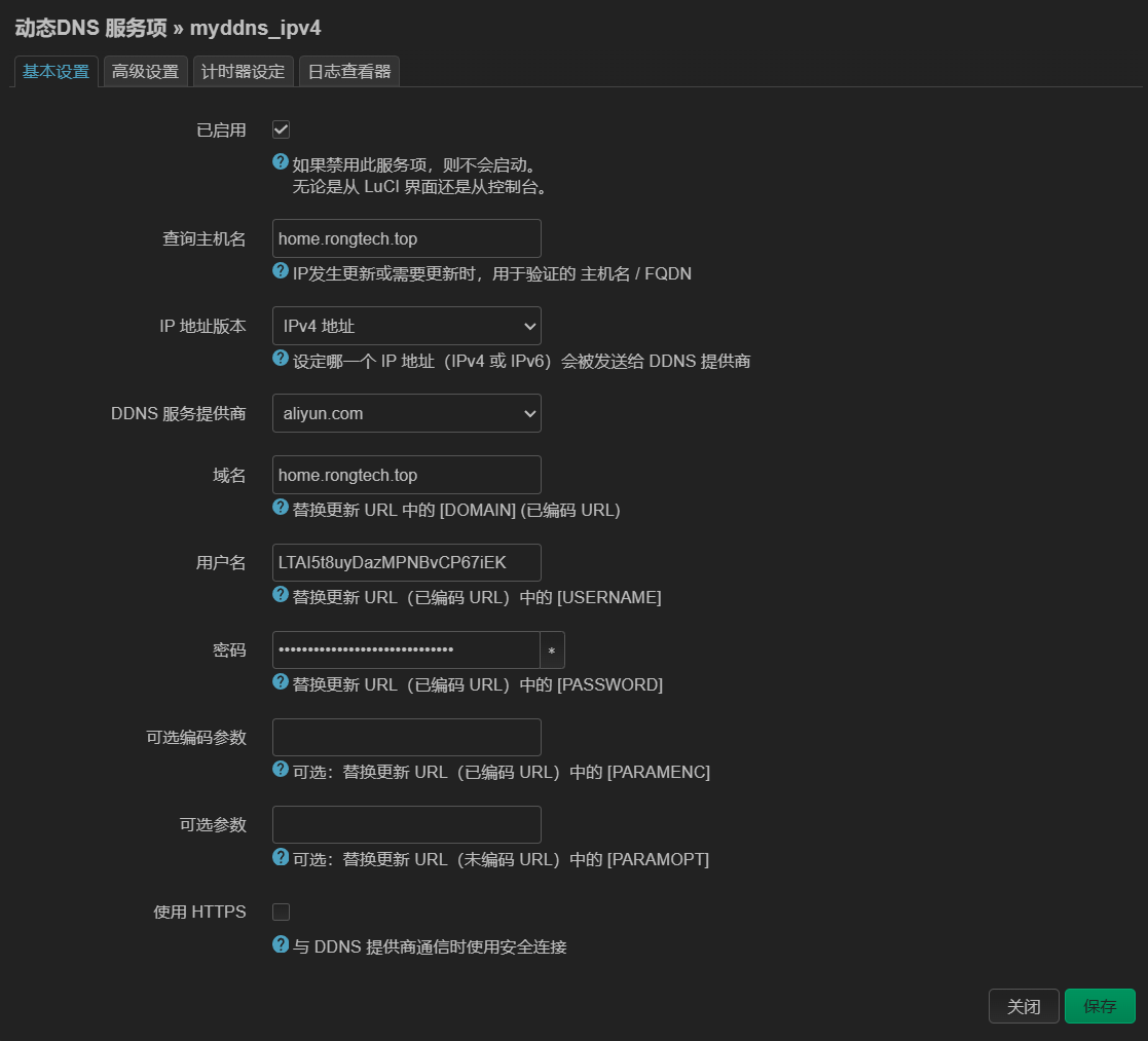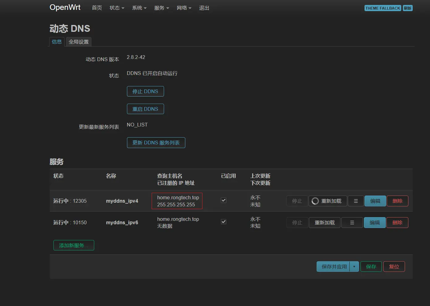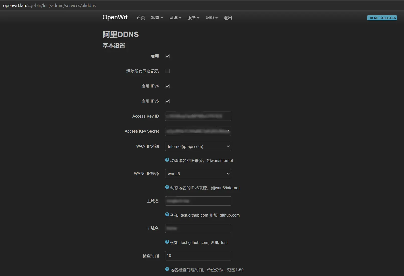 2、服务-阿里DDNS 进行相关配置保存并应用