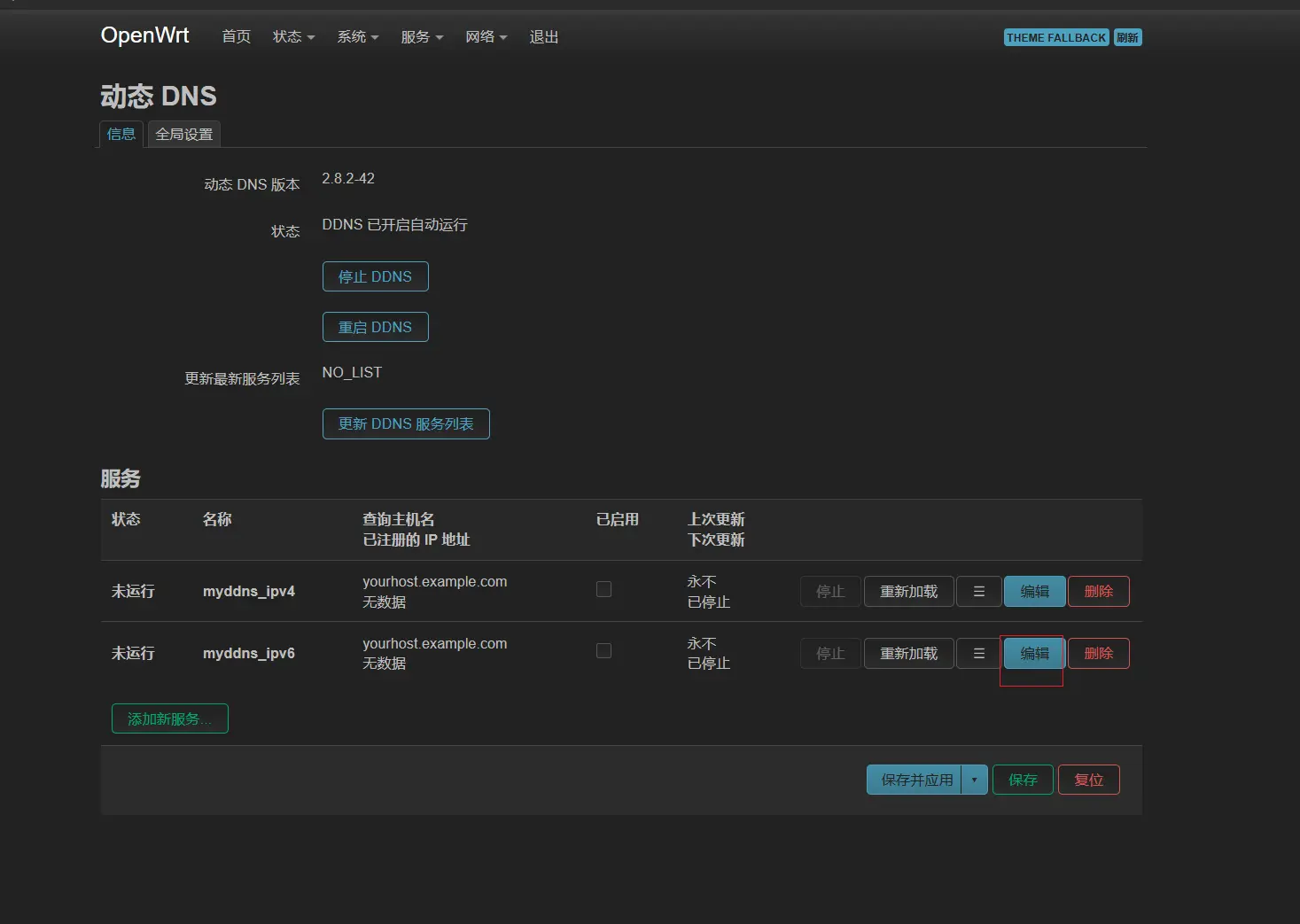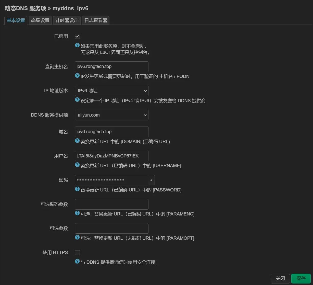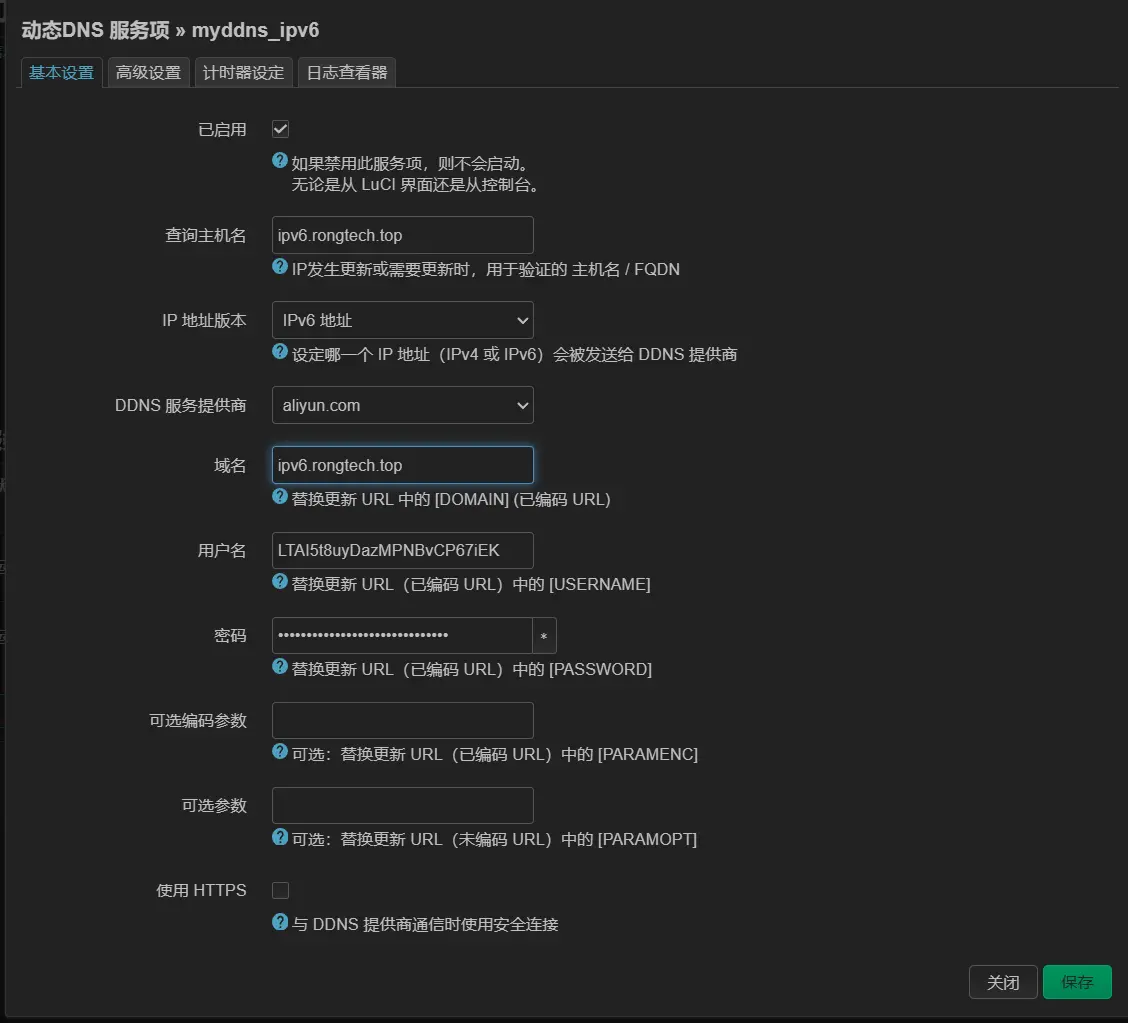 2、服务-阿里DDNS 进行相关配置保存并应用