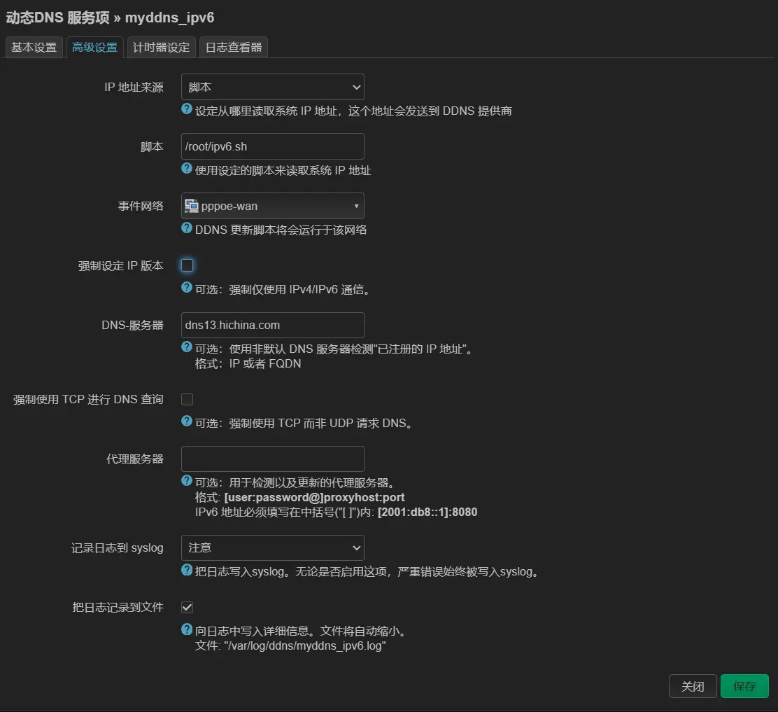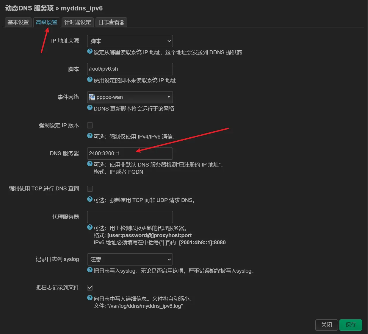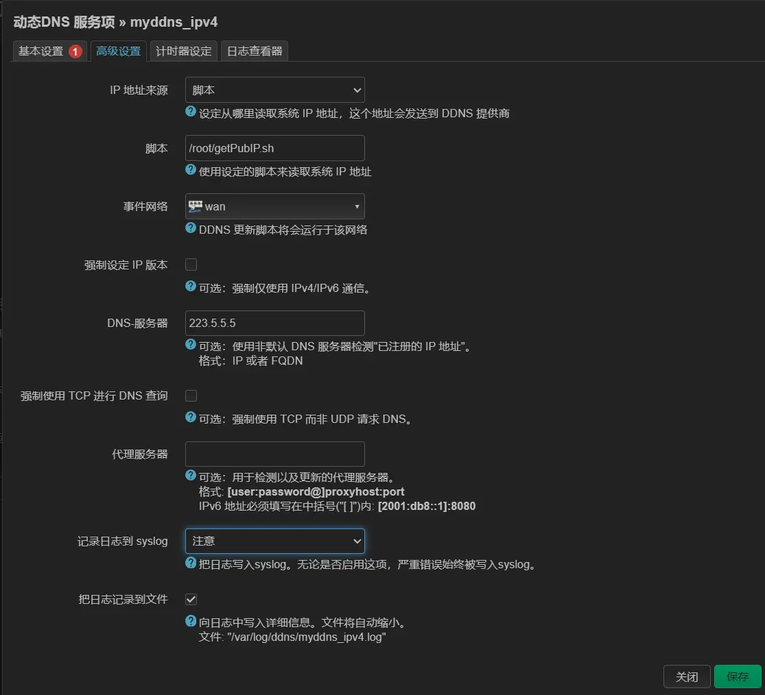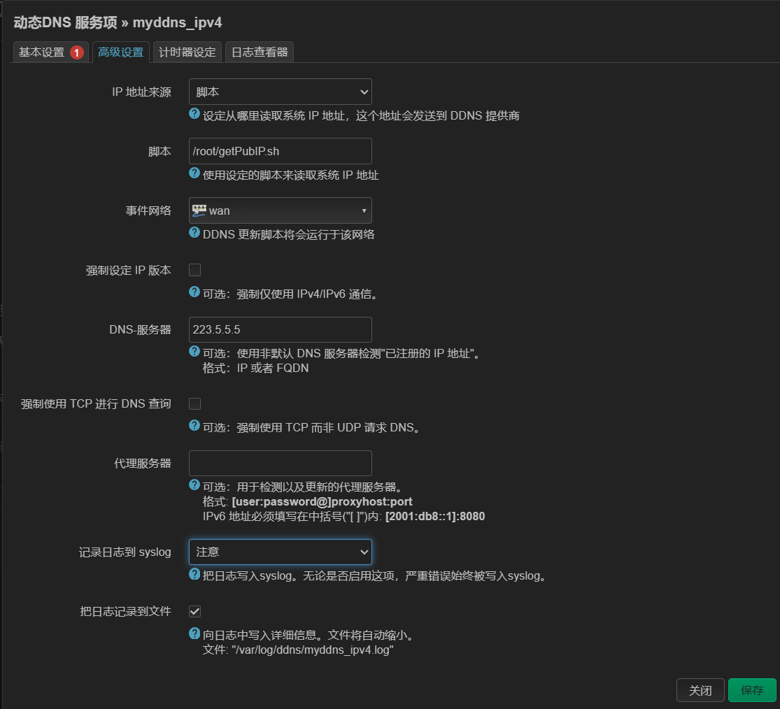 2、服务-阿里DDNS 进行相关配置保存并应用
