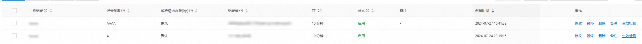 3、等待10~20分钟,阿里云域名控制台验证域名是否解析生效,以下已经成功解析