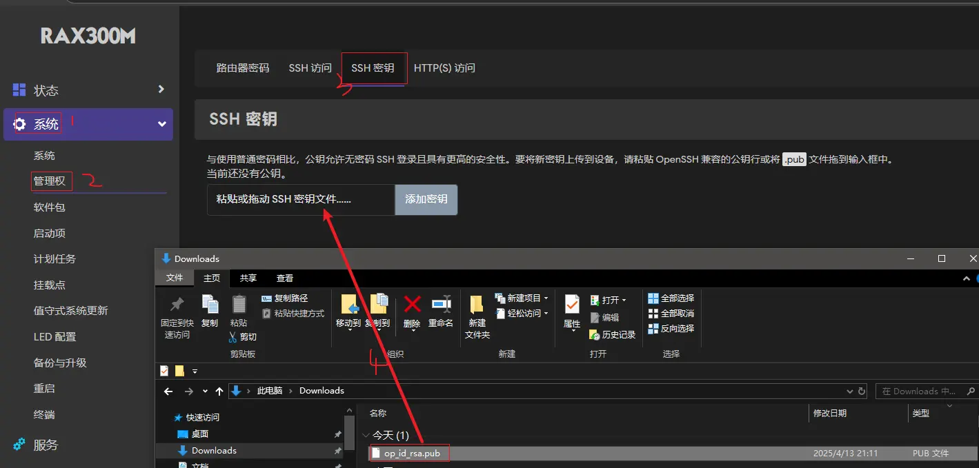 /root/op_id_rsa.pub 为生成的公钥,放在openwrt设备上。