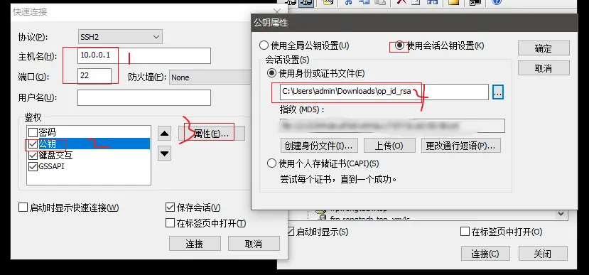 ssh -i C:\Users\admin\Downloads\op_id_rsa root@10.0.0.1若成功登录,表示配置正确。