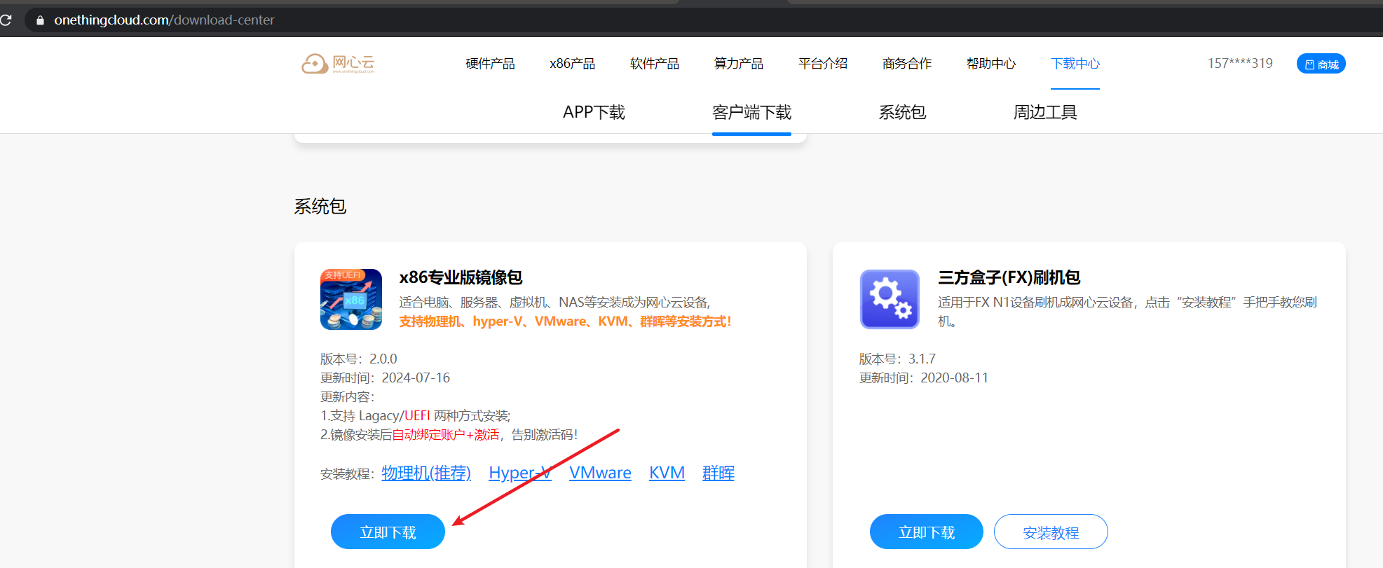 1、注册账号https://www.onethingcloud.com/2、下载系统包https://www.onethingcloud.com/download-center3、虚拟机安装exsi创建虚拟机安装虚拟机开机后进入向导模式同意协议输入手机号登录激活设备装机完成4、网心云APP登录