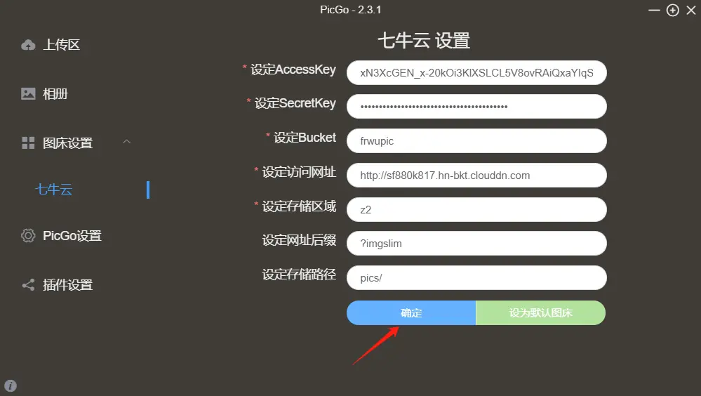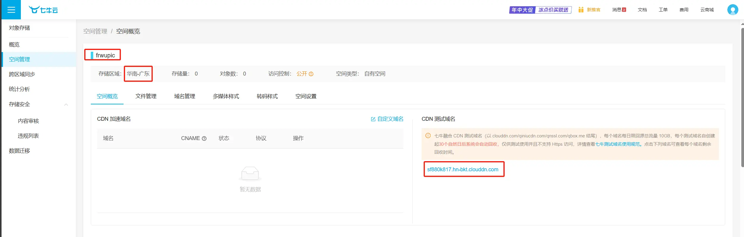 Bucket:这里就是存储空间名, 访问网址:CDN加速域名,需要带上 http:// 或者 https:// 前缀,具体看配置的域名,是否支持 https