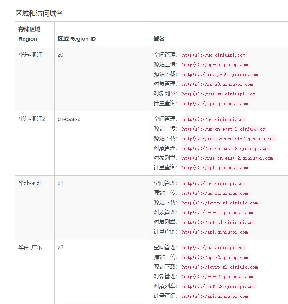 存储区域代码:https://developer.qiniu.com/kodo/1671/region-endpoint-fq