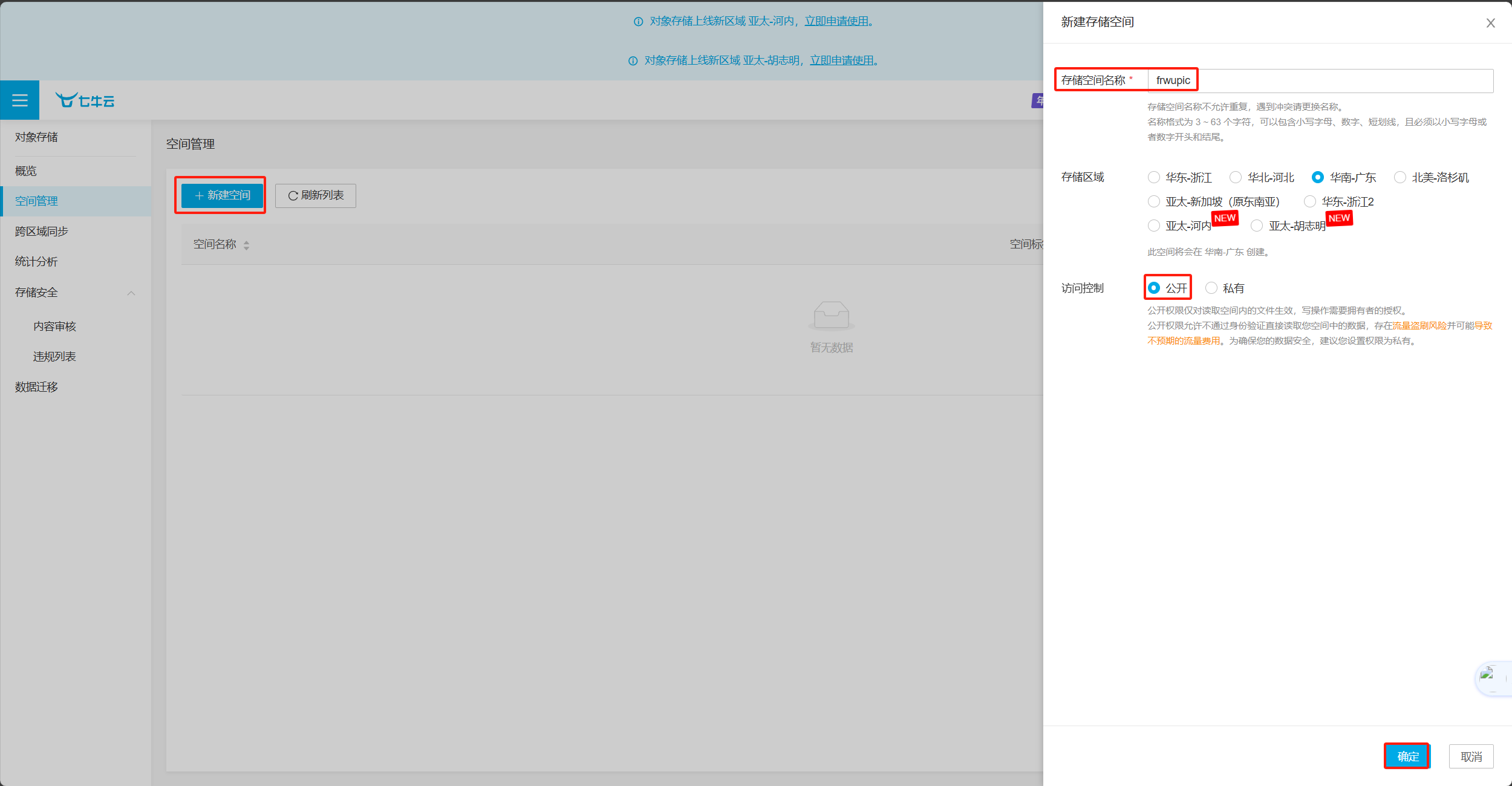 存储区域:根据空间的存储区域,填写对应的代码。 存储路径:就是将图片保存到空间的中哪个子目录中,不写就是保存到根目录